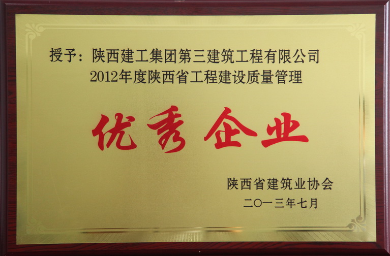 陜西省工程建設質(zhì)量管理優(yōu)秀企業(yè)