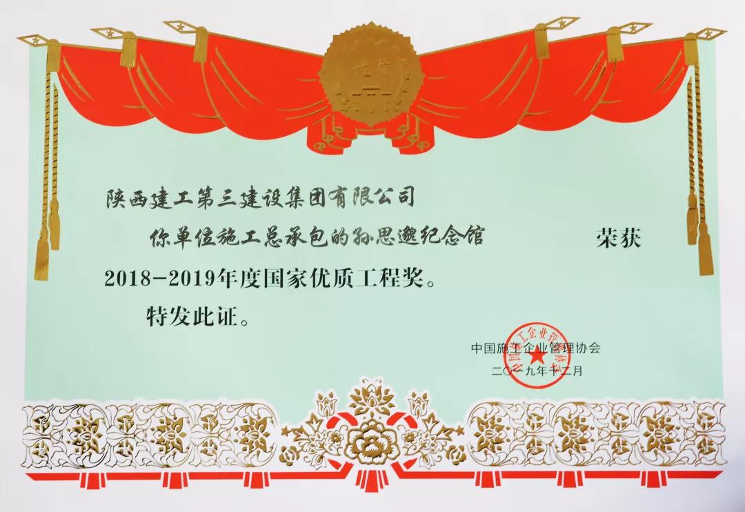 12月8日,2019年國家優(yōu)質(zhì)工程獎總結(jié)表彰大會在北京國家會議中心召開,由集團公司承建的孫思邈紀念館工程榮獲2018-2019年度國家優(yōu)質(zhì)工程獎,這是繼集團公司延安棗園文化廣場一期一標段工程榮獲2017年國優(yōu)獎后,獲得的第10項國家優(yōu)質(zhì)工程獎。