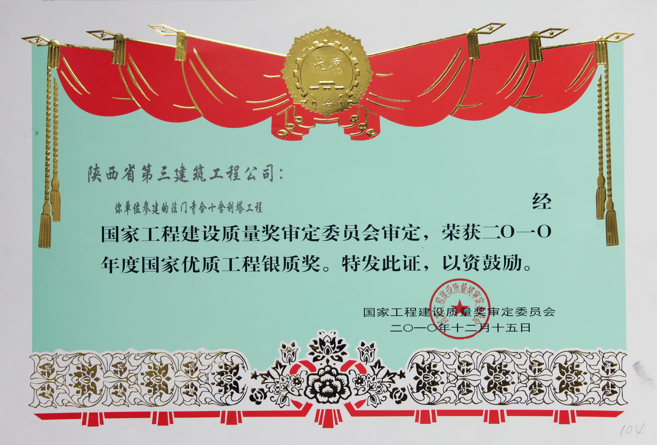 國家優(yōu)質(zhì)工程銀質(zhì)獎