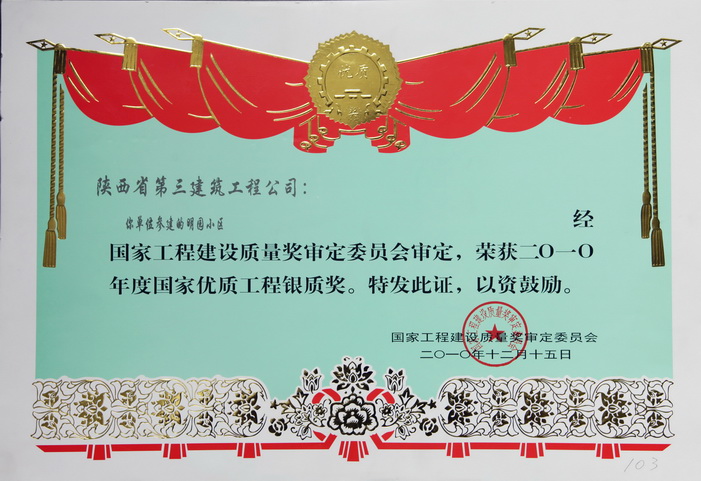 國家優(yōu)質(zhì)工程銀質(zhì)獎